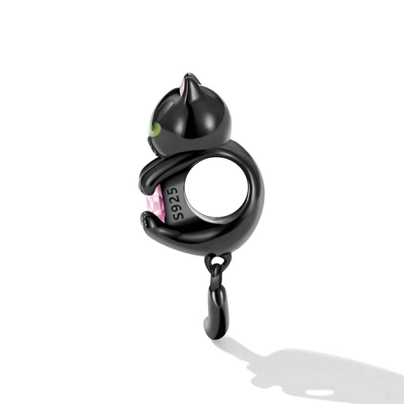 Little Black Cat Charm Silver