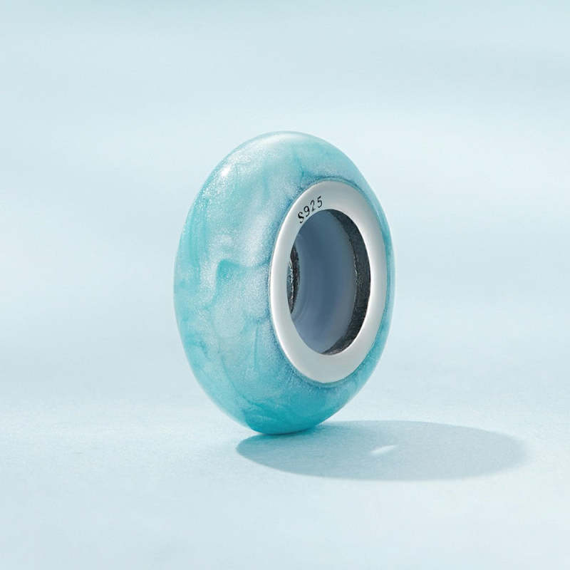 Macaron Blue Stopper Charm Spacer Charm Silver