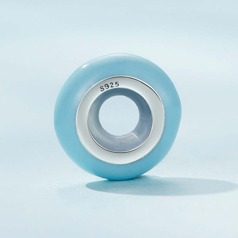 Macaron Cyan Stopper Charm Spacer Charm Silver