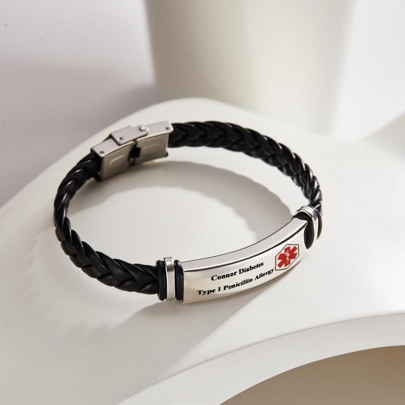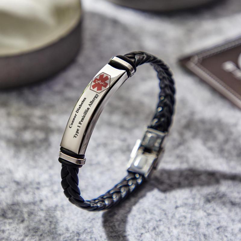 Keep the Message Concise--The message on the medical ID alert Bracelet tag must be concise and to the point. Please keep the custom engraving short & Concise and list allergies last prevents confusion with medication or conditions. The more complicated information, the more difficult it will be to convey your condition to people.