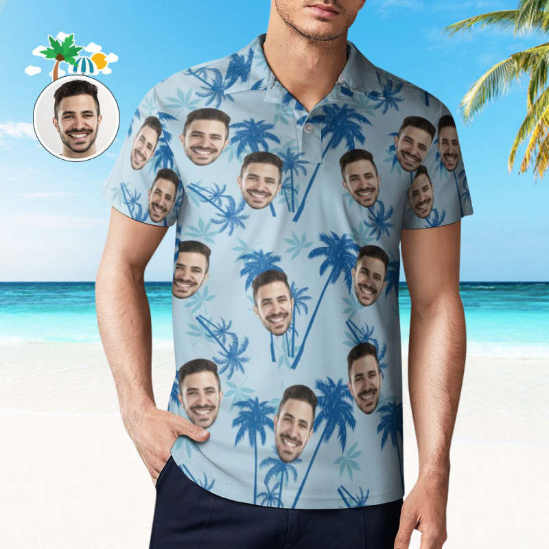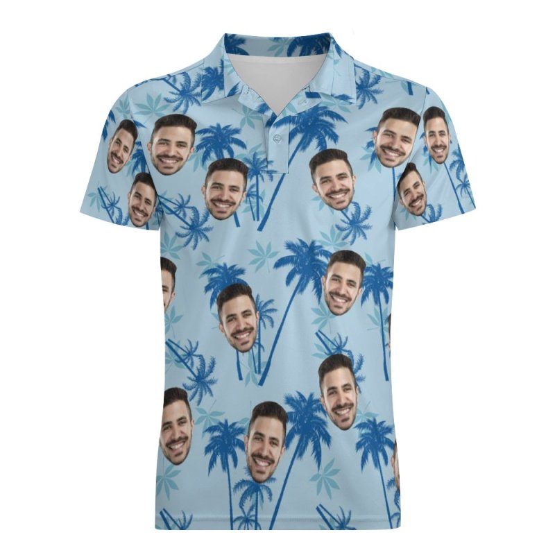 Men's Custom Logo Polo Shirt Personalized Light Blue Hawaiian Golf Shirts