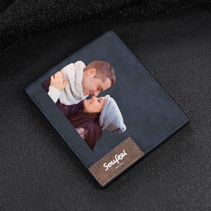 Men's Bifold Custom Inscription Photo Wallet - Blue Leather