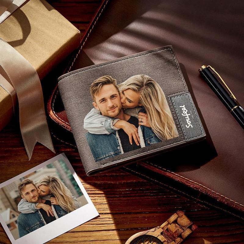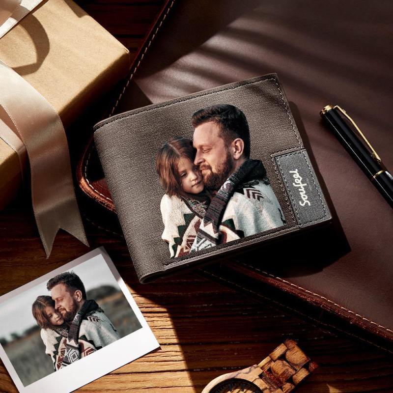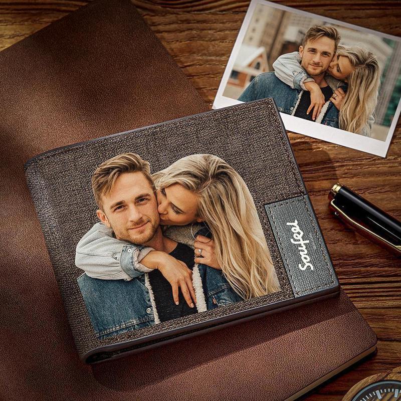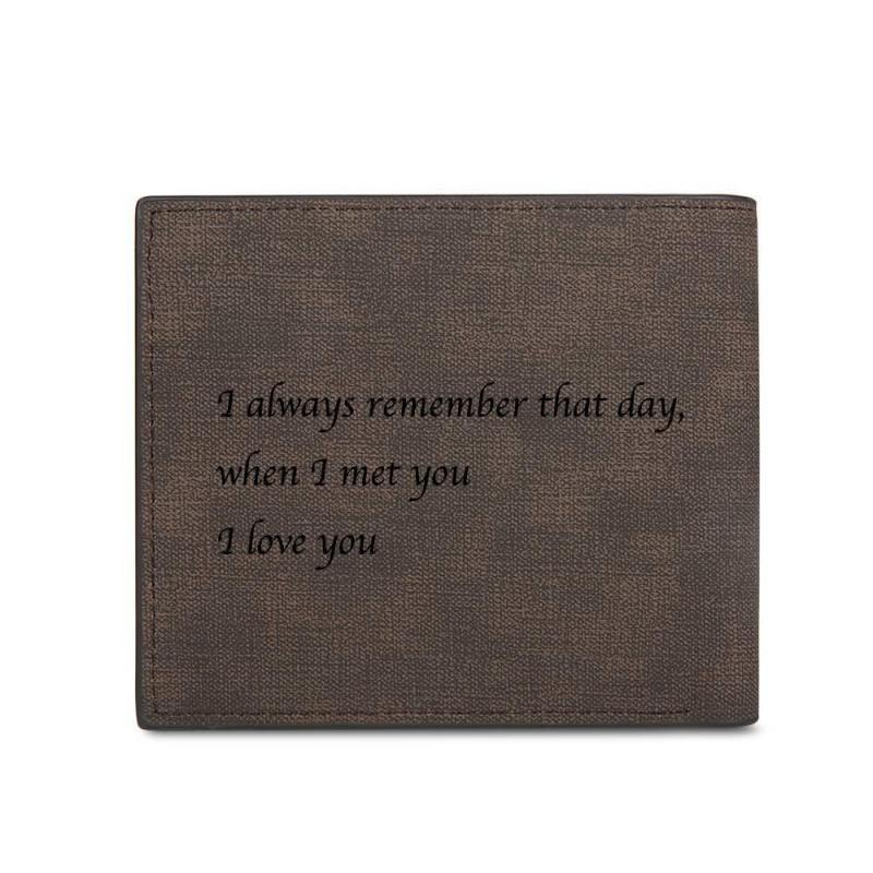 Men's Bifold Custom Inscription Photo Wallet - Coffee Leather
