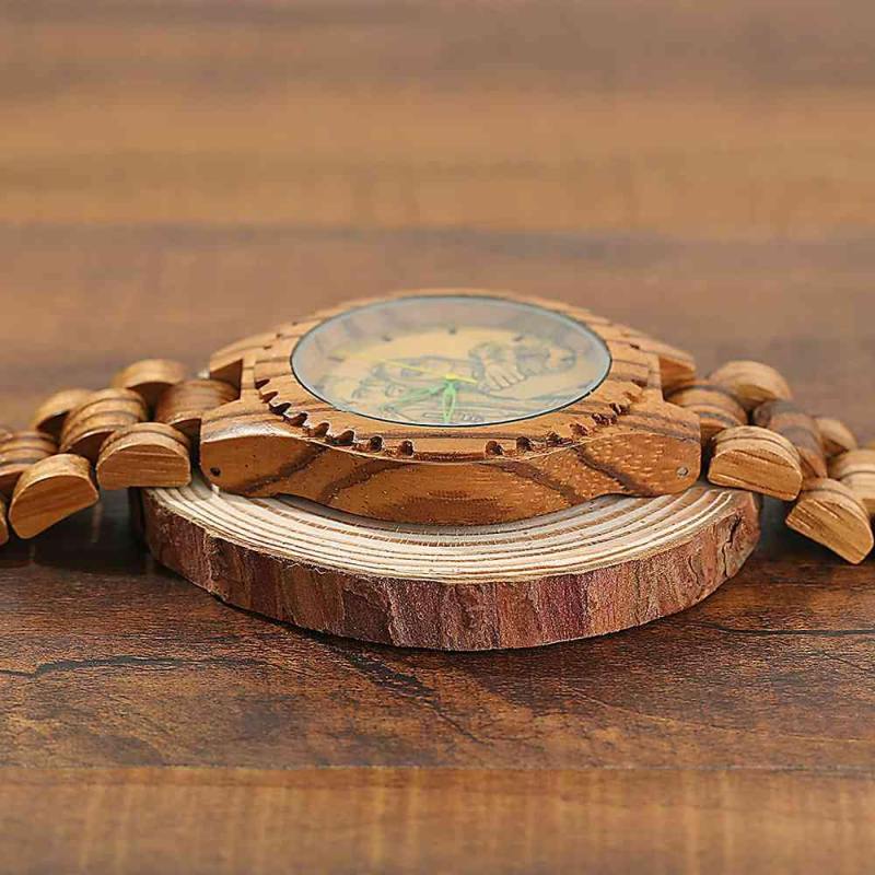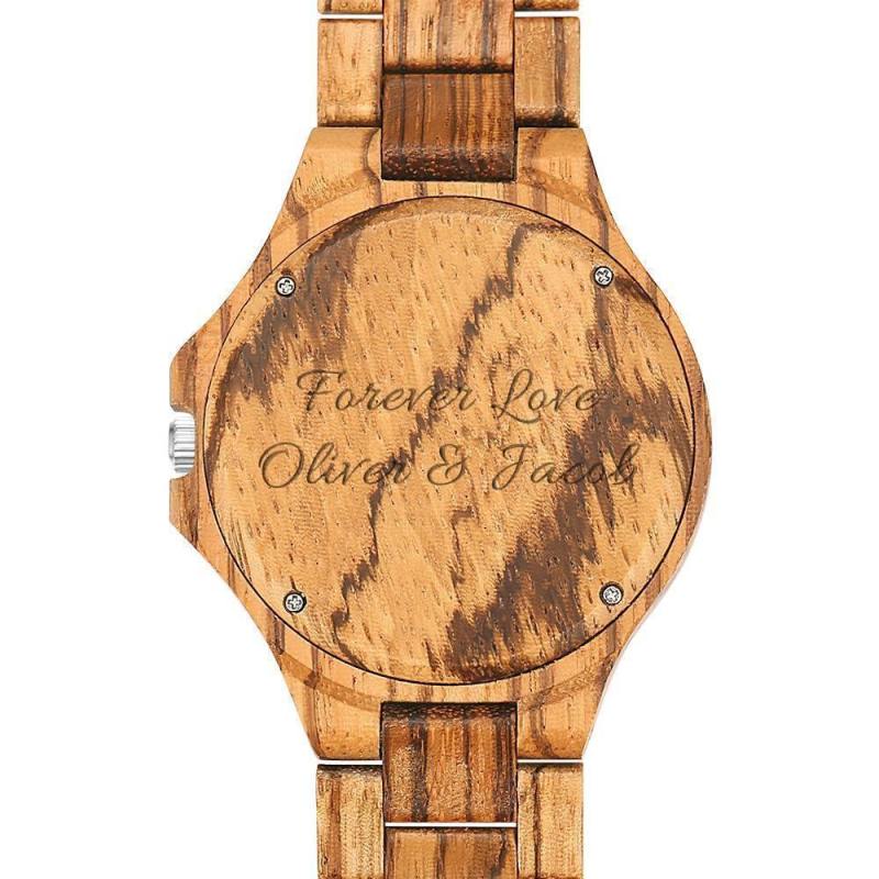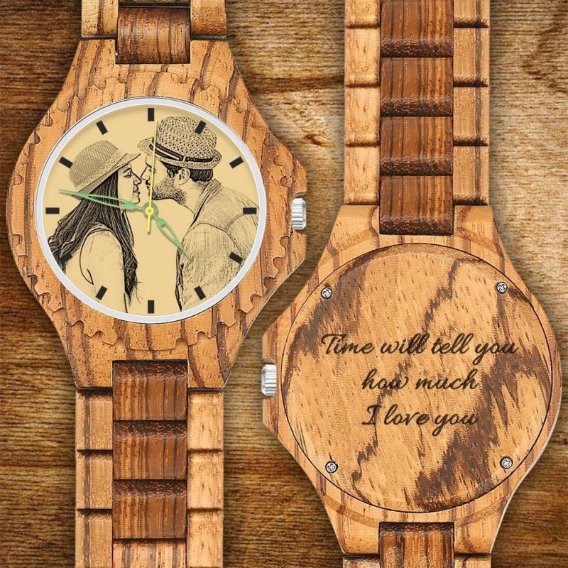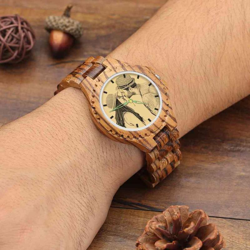 Men's Engraved Wooden Photo Watch Wooden Strap 45mm