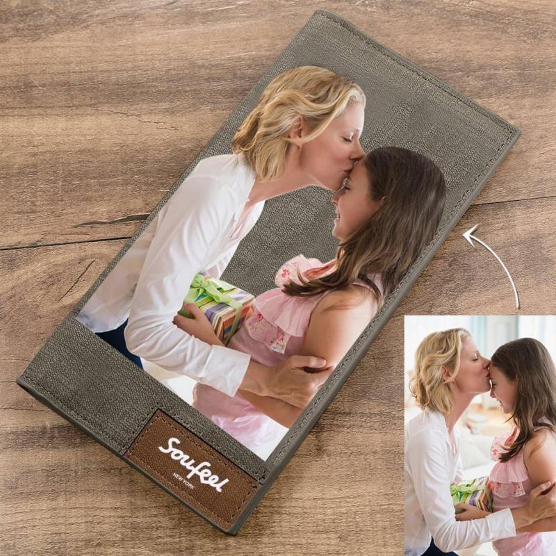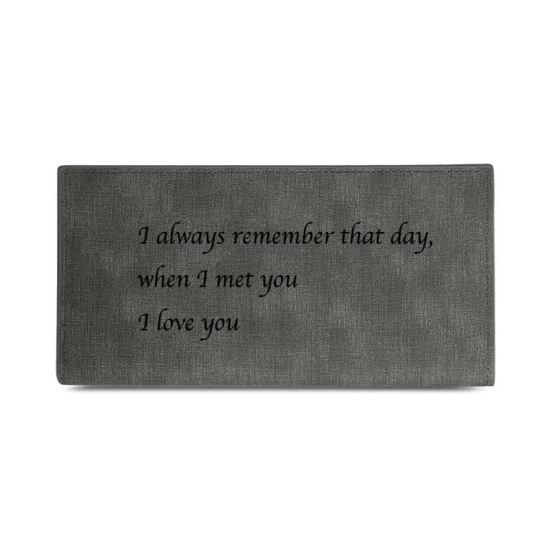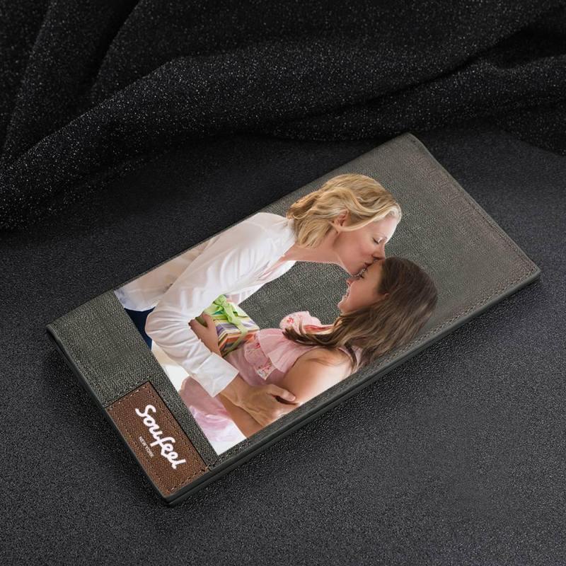 Men's Long Style Bifold Custom Inscription Photo Wallet - Grey Leather