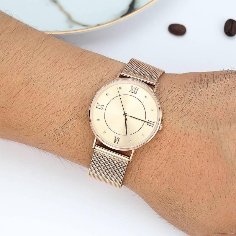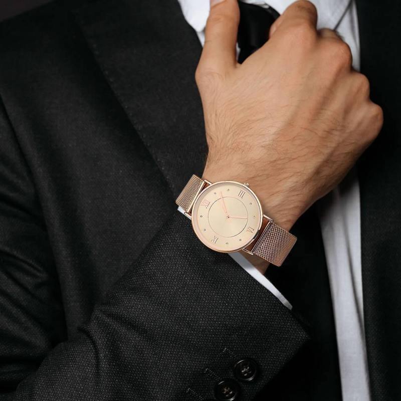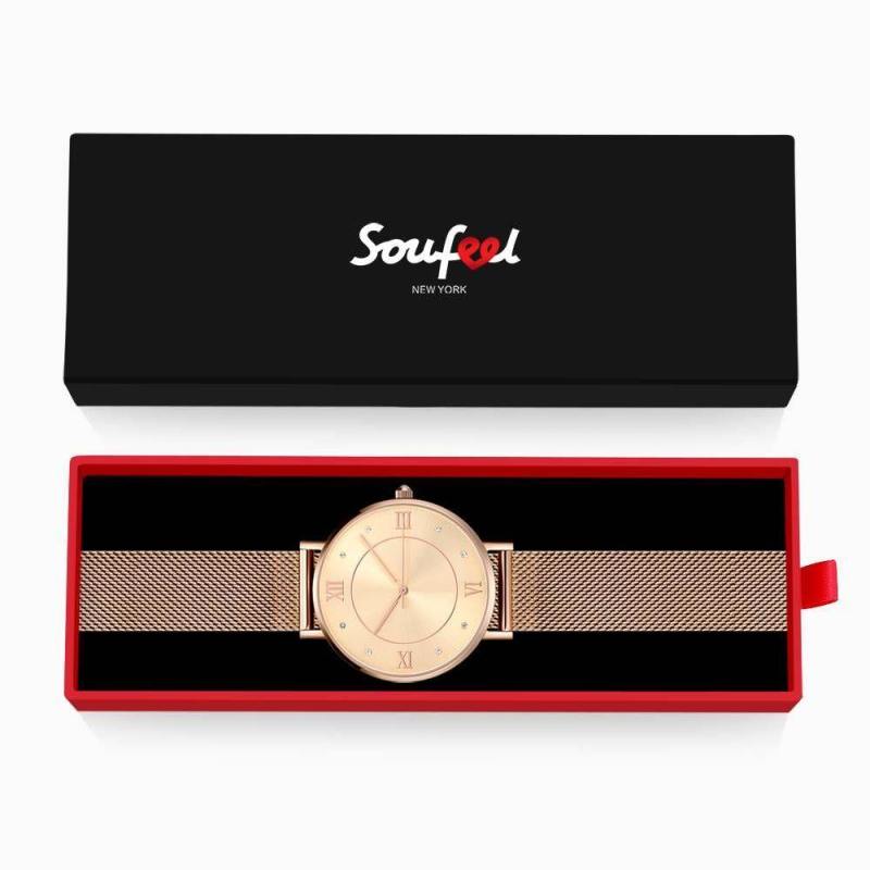 Soufeel adopts the watch movements manufactured by world's leading movement manufacturer Ronda in Switzerland and Citizen in Japan, you will enjoy the precise time as you wish. Daily life water resistant. It is a true designer statement and the perfect watch for any occasions. This watch has a simple and unique design, with a slim case, you can easily match any type of accessories to it. This classic timepiece is a perfect gift for you or your friends in a sleek and luxurious way. Soufeel has a ton of customized jewelry options that are reasonably priced and make for great gifts for all sorts of occasions like birthdays, holidays, anniversaries. It's great for layering, a wonderful minimalist piece, perfect gift for your wife, girlfriend, husband, boyfriend or simply to treat yourself! Mesh Bracelet Watch in Alloy Rose Gold - Men's.