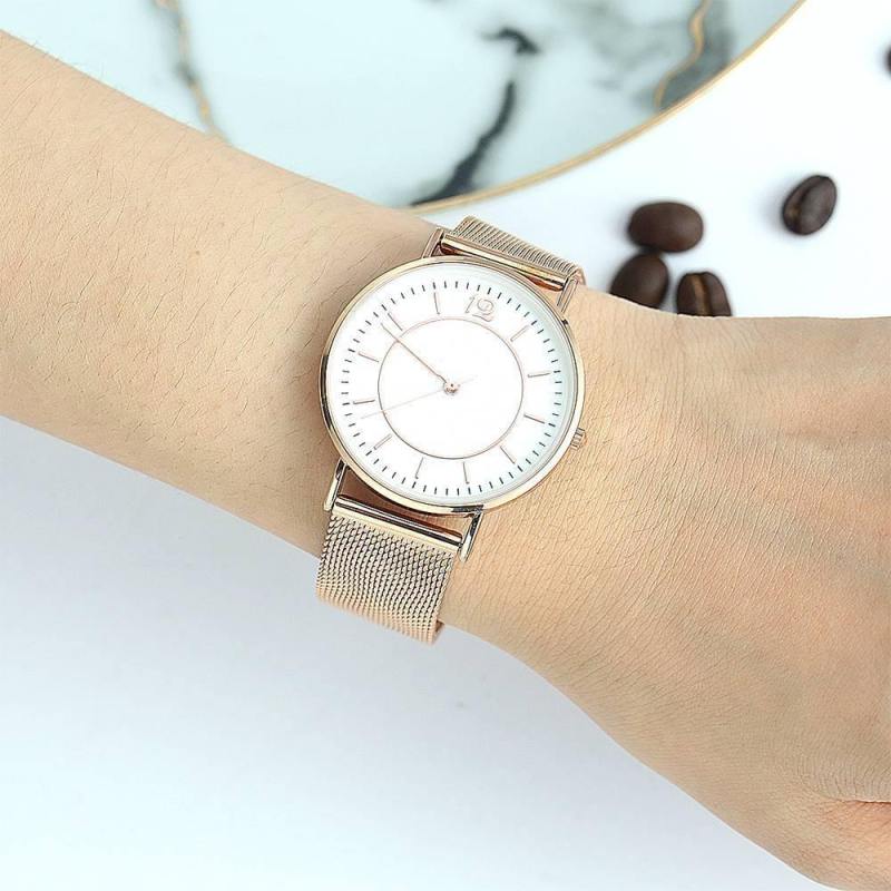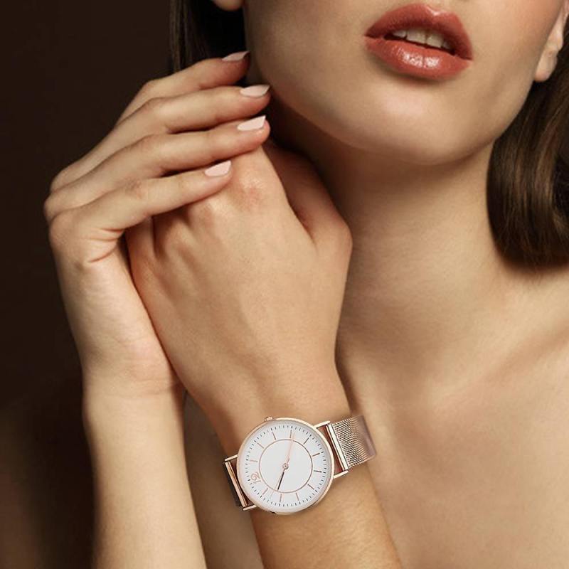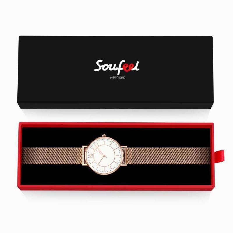 Soufeel adopts the watch movements manufactured by world's leading movement manufacturer Ronda in Switzerland and Citizen in Japan, you will enjoy the precise time as you wish. Daily life water resistant. It is a true designer statement and the perfect watch for any occasions. This watch has a simple and unique design, with a slim case, you can easily match any type of accessories to it. This classic timepiece is a perfect gift for you or your friends in a sleek and luxurious way. Soufeel has a ton of customized jewelry options that are reasonably priced and make for great gifts for all sorts of occasions like birthdays, holidays, anniversaries. It's great for layering, a wonderful minimalist piece, perfect gift for your wife, girlfriend, husband, boyfriend or simply to treat yourself! Mesh Bracelet Watch in Alloy Rose Gold Strap and White Dial - Women's.