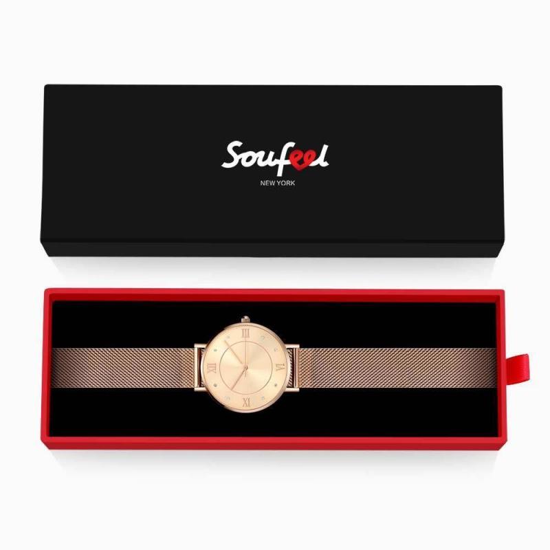 Soufeel adopts the watch movements manufactured by world's leading movement manufacturer Ronda in Switzerland and Citizen in Japan, you will enjoy the precise time as you wish. Daily life water resistant. It is a true designer statement and the perfect watch for any occasions. This watch has a simple and unique design, with a slim case, you can easily match any type of accessories to it. This classic timepiece is a perfect gift for you or your friends in a sleek and luxurious way. Soufeel has a ton of customized jewelry options that are reasonably priced and make for great gifts for all sorts of occasions like birthdays, holidays, anniversaries. It's great for layering, a wonderful minimalist piece, perfect gift for your wife, girlfriend, husband, boyfriend or simply to treat yourself! Mesh Bracelet Watch in Alloy Rose Gold - Women's.