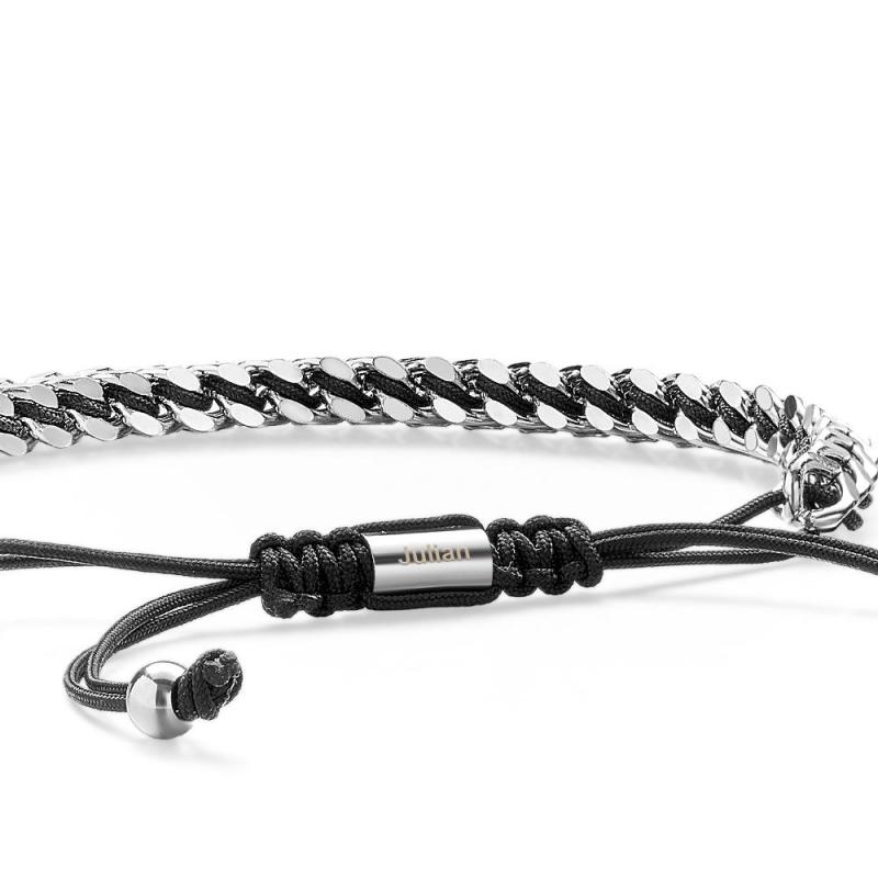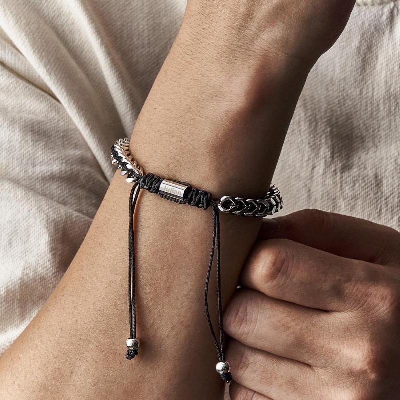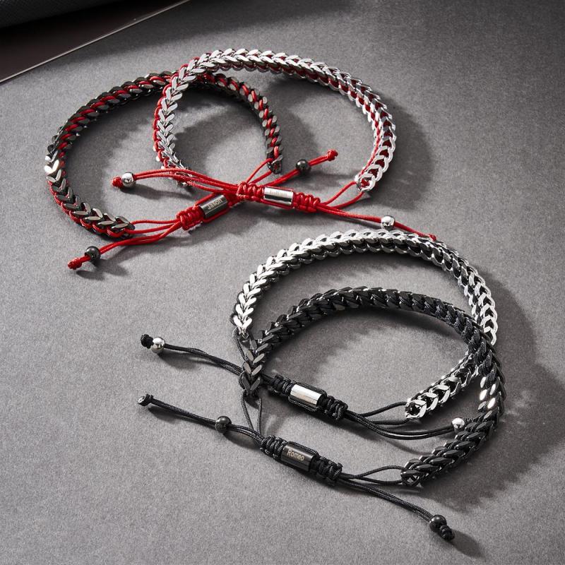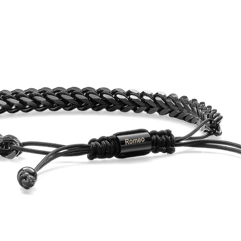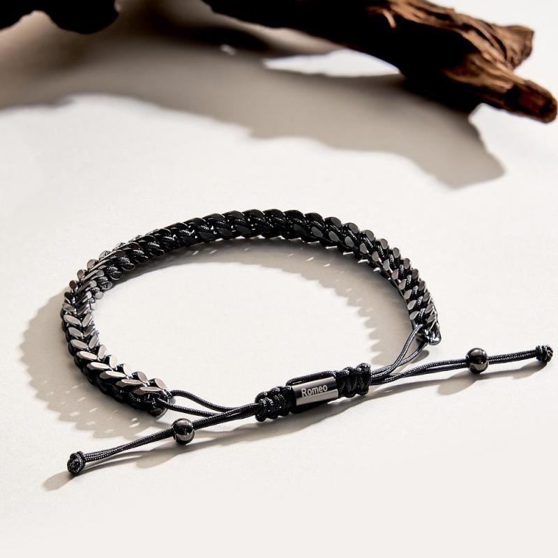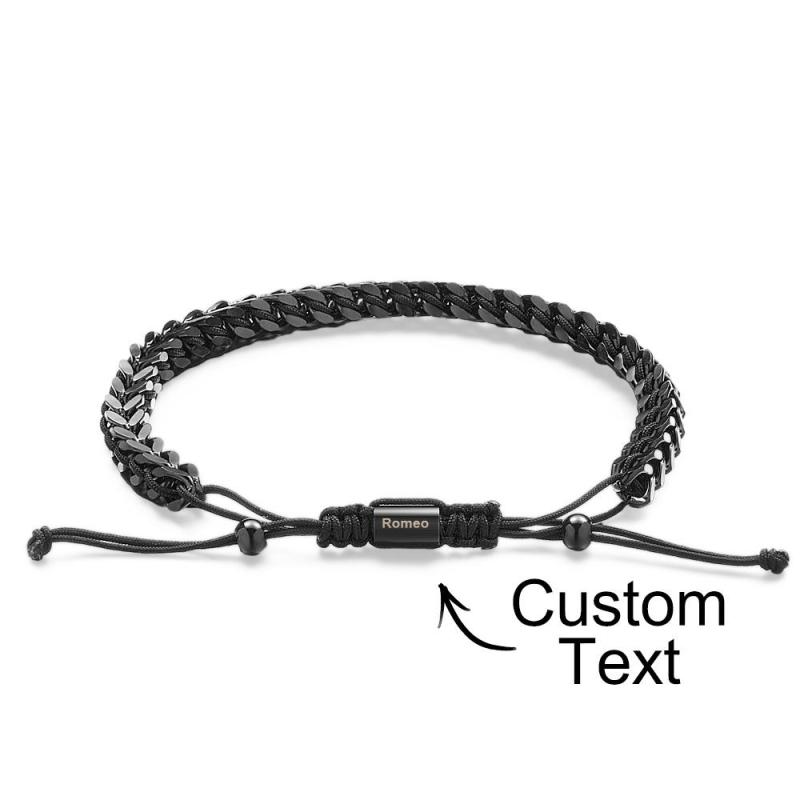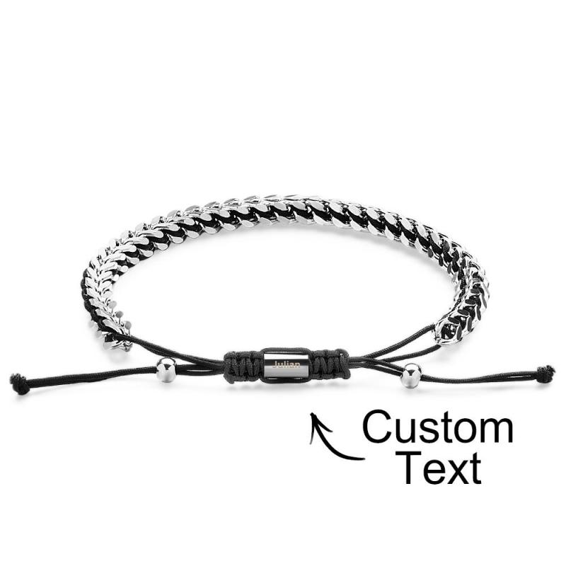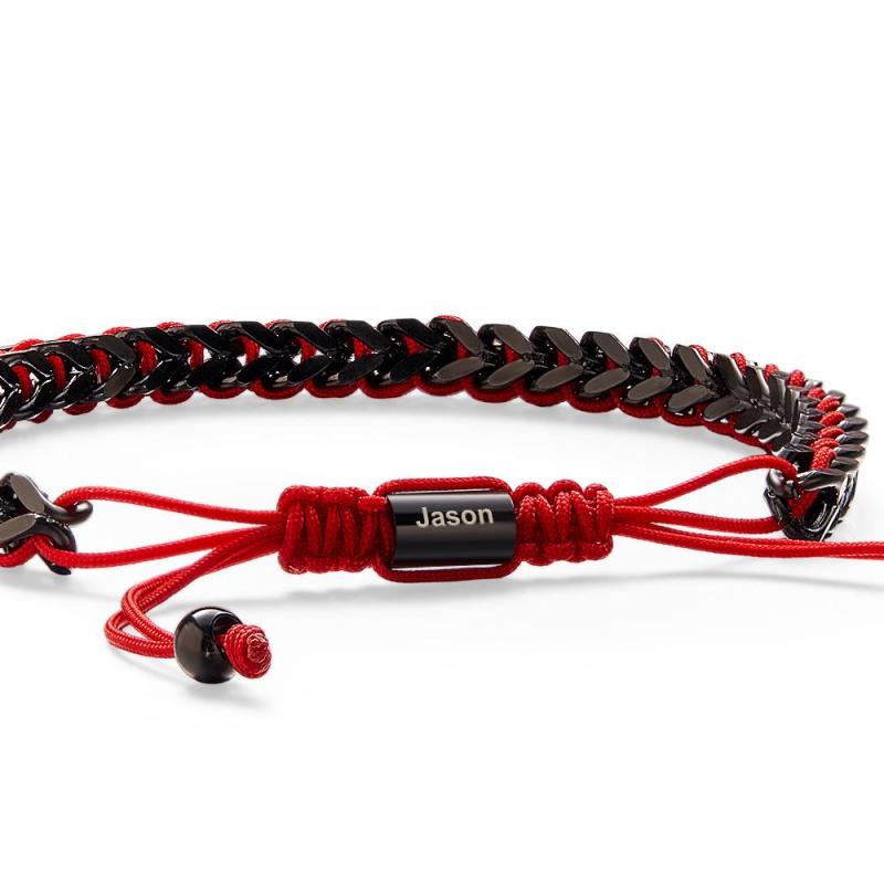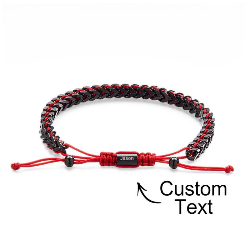 Add a touch of style to your wrist with our Metal Rope Woven and Stainless Steel Bracelet. Available in red, black, and silver, this customizable piece is perfect for men. With a sleek design and the option to personalize it with your own text, this bracelet is truly unique. Elevate your look today!