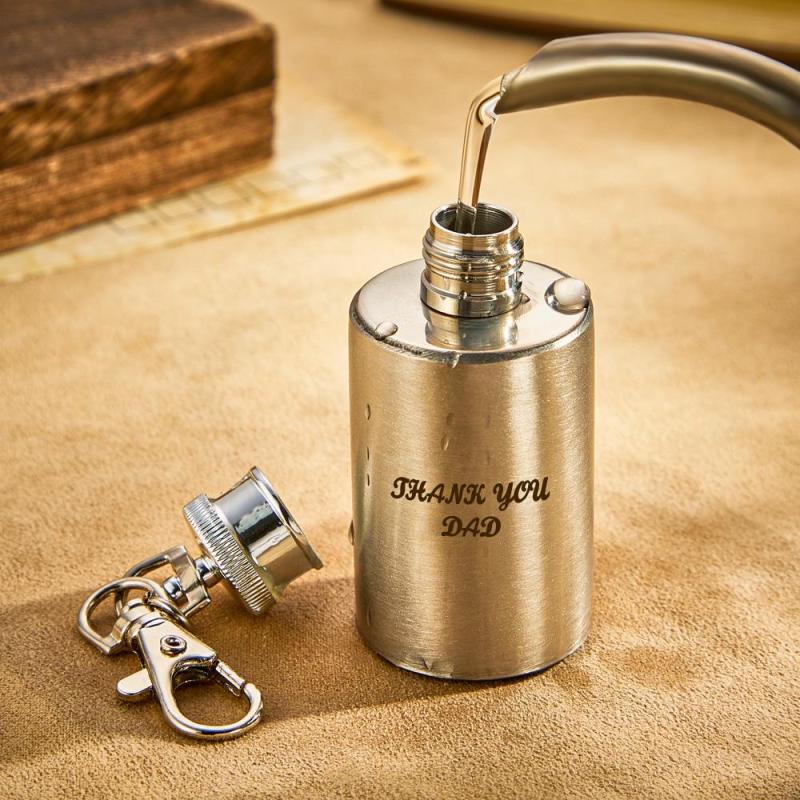 This custom key chain hip flask makes a perfect gift for any occasion. With a miniature design, it comes complete with a keychain attachment and can be engraved with a personalized message. Enjoy life's special moments with this convenient and unforgettable gift.Perfect gift for father,engraved stainless steel hip flask keychain,miniature in size and? easy to carry with the key holder.