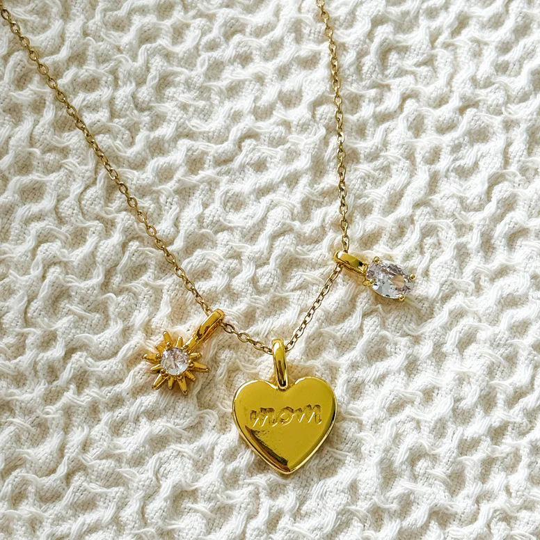 Celebrate the special bond between a mother and child with our MOM Heart Dainty Gold Necklace. This exquisite piece features a beautifully crafted heart pendant, symbolizing love and affection, along with a round zircon stone and a stunning six-pointed star for an added touch of elegance. Perfect for Mother's Day or any occasion that calls for a heartfelt gift, this necklace is designed to make your loved one feel cherished.