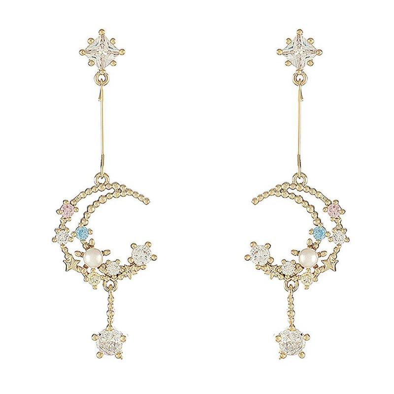 Moon and Star Celestial Pearl Night Sky Drop Earrings