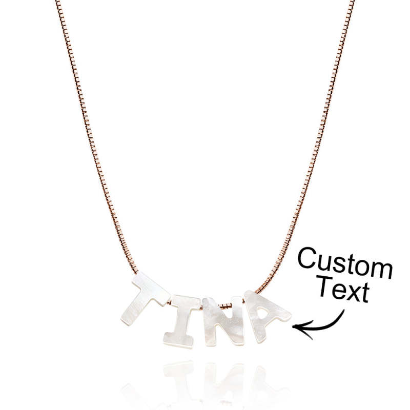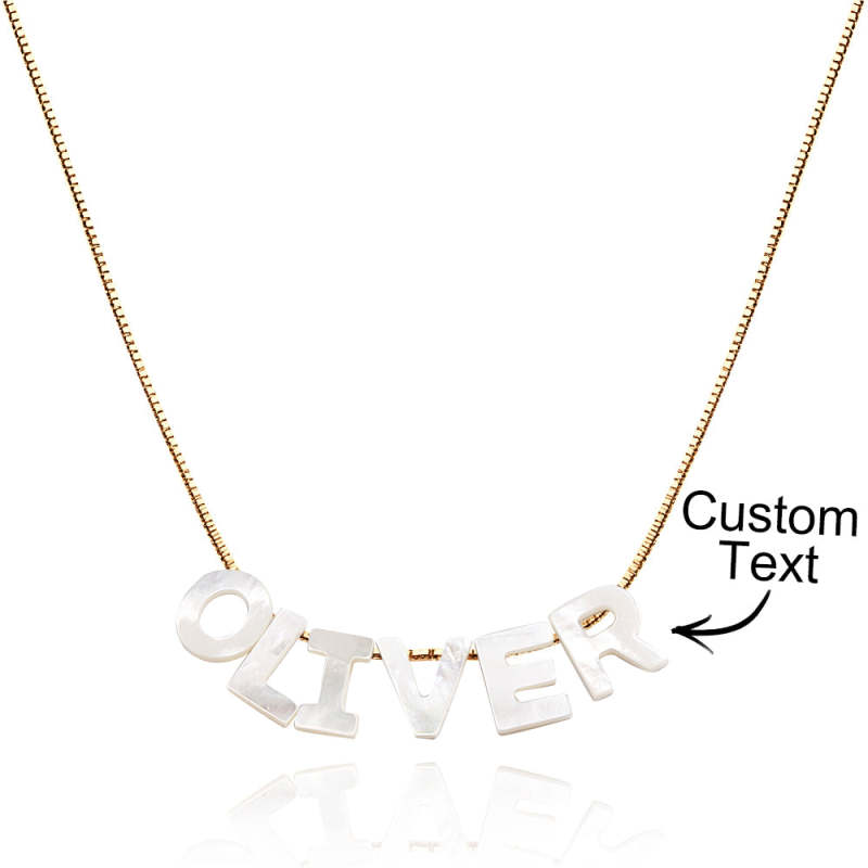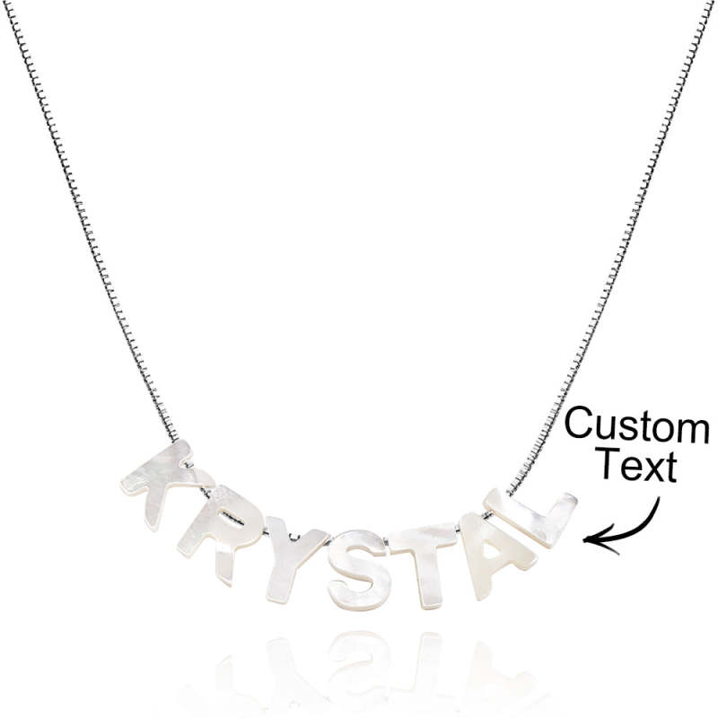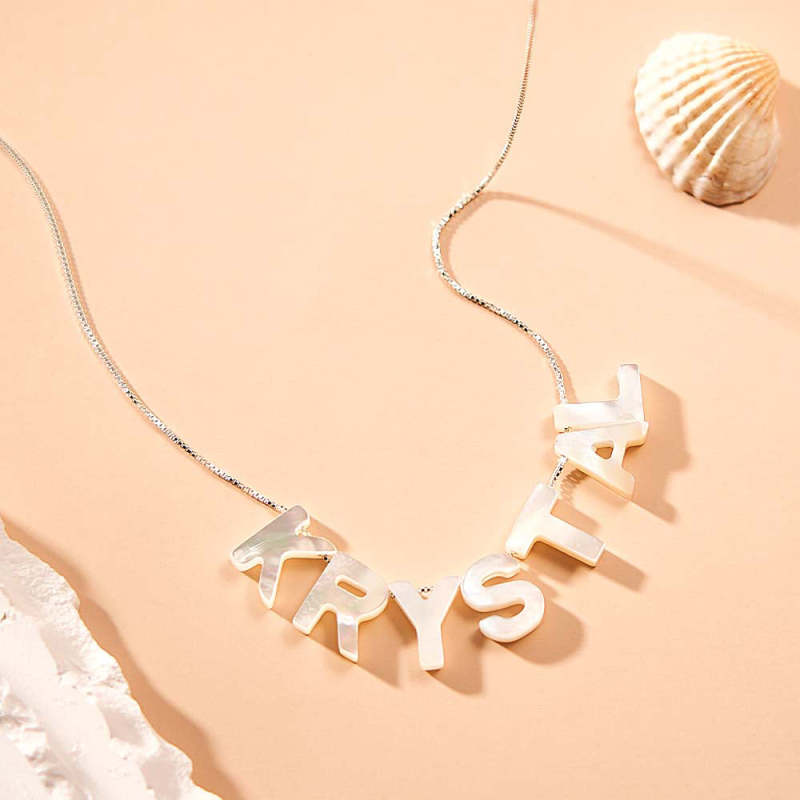 Mother of Pearl Name Necklace Custom Name Silver Necklace