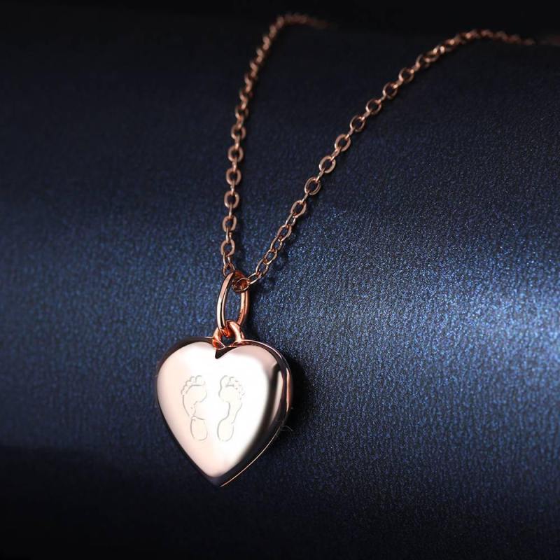 Mother's Necklace - Heart Engraved Photo Necklace Rose Gold Plated Silver