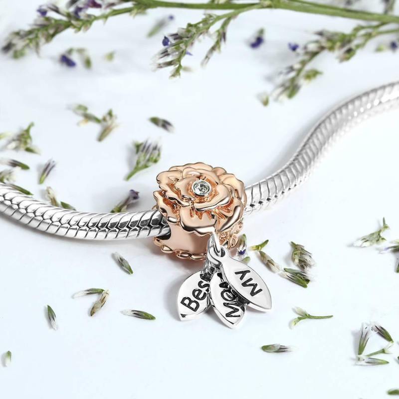 My Mom Best Charm Rose Gold Plated Silver Crystal Crystal