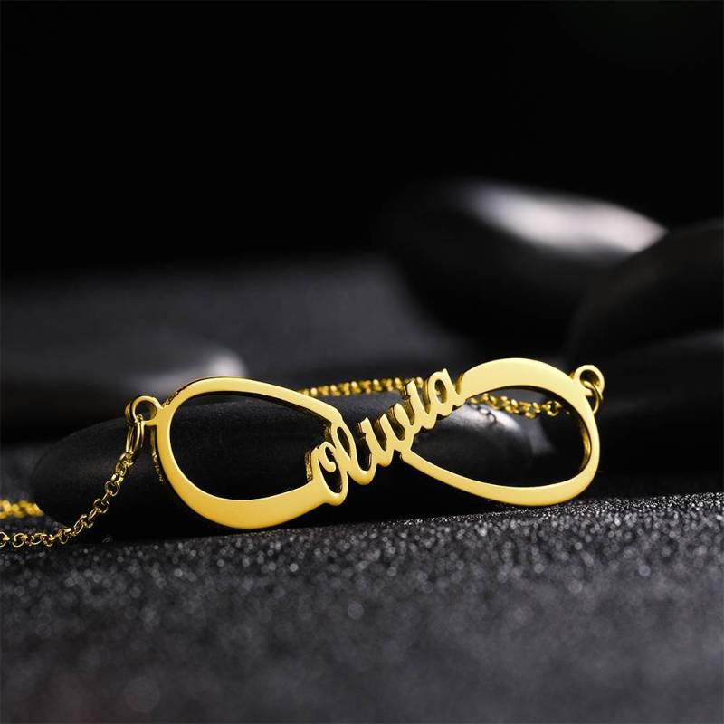 Name Necklace, Infinity Necklace Classical Style 14K Gold Plated - Silver