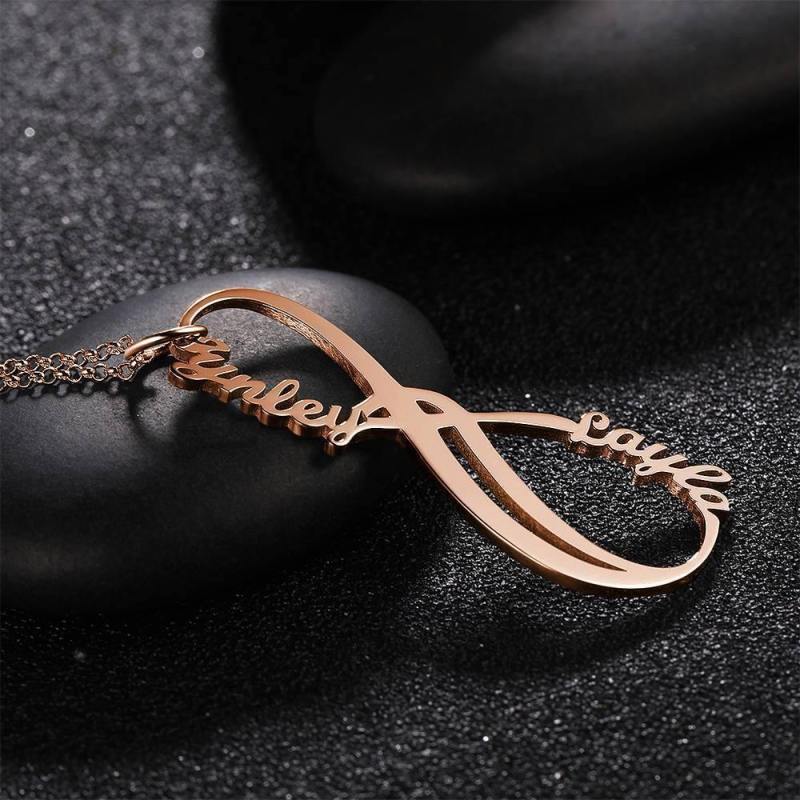 Name Necklace, Infinity Necklace with Two Names Rose Gold Plated - Silver