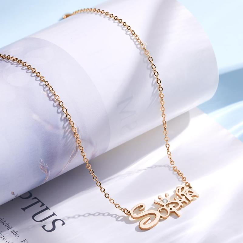 Name Necklace Princess Necklace with Crown Memorial Gifts Rose Gold Plated