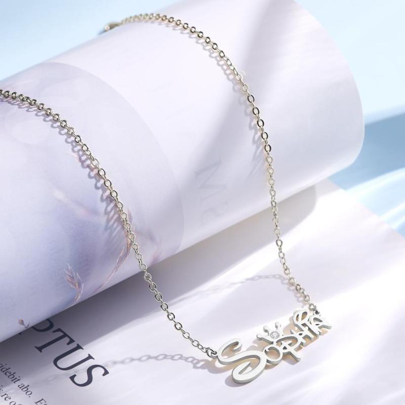 Name Necklace Princess Necklace with Crown Memorial Gifts Silver