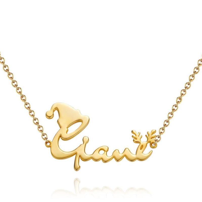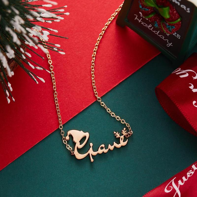 Name Necklace with Christmas Hat and Antlers for Christmas Gifts Perfect Gift for Her Rose Gold Plated Silver