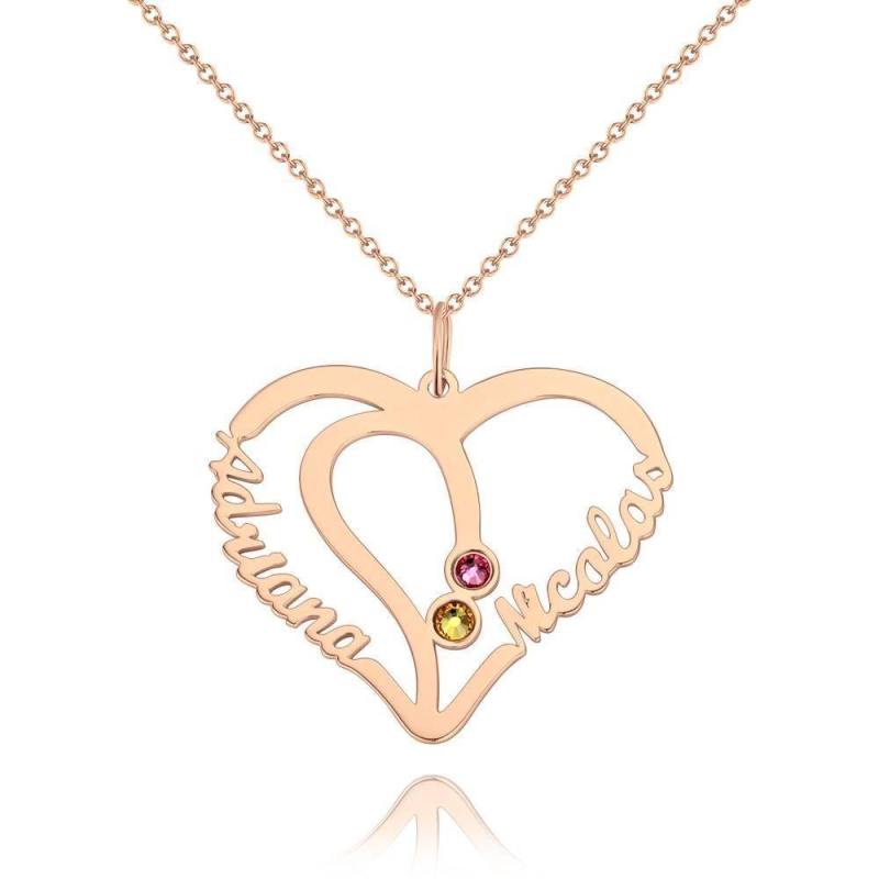 Name Necklace with Two Birthstones Silver