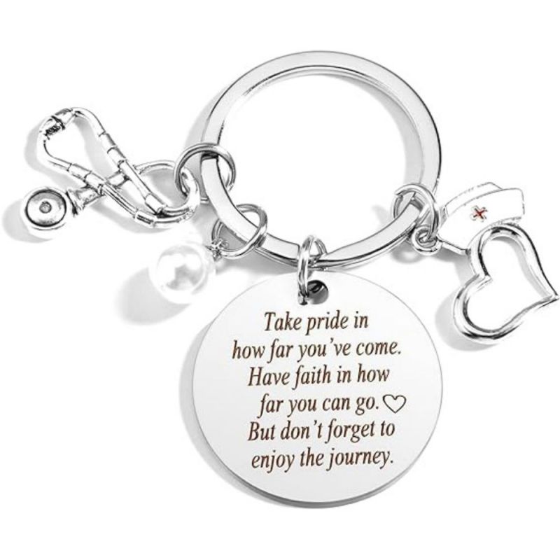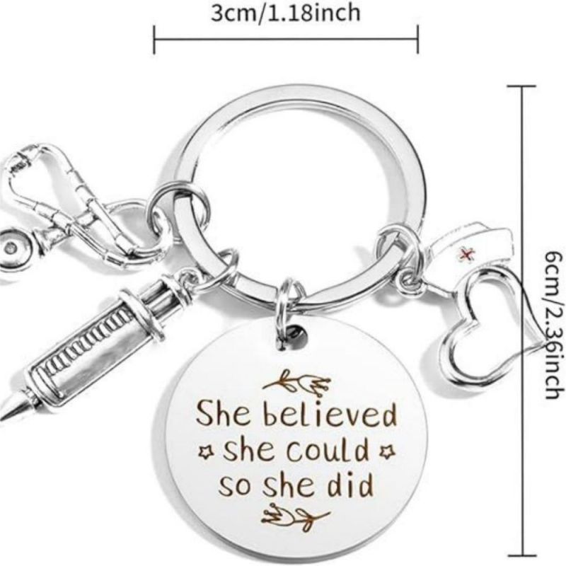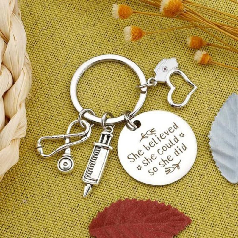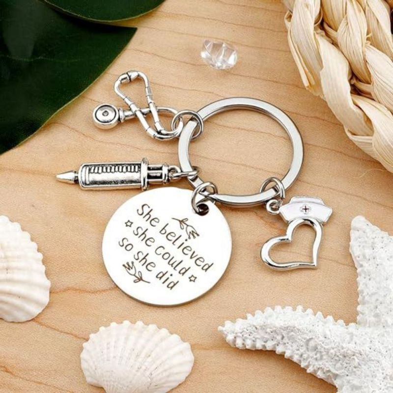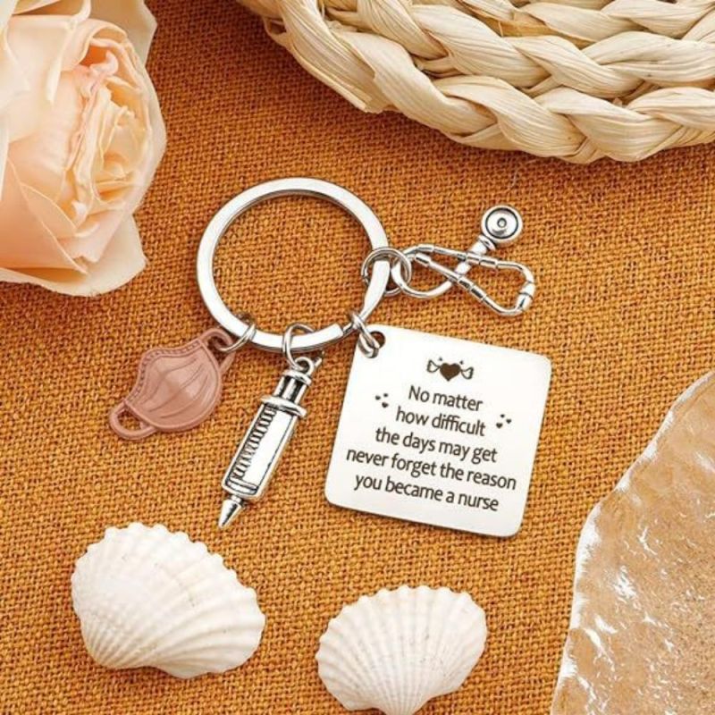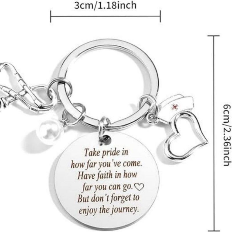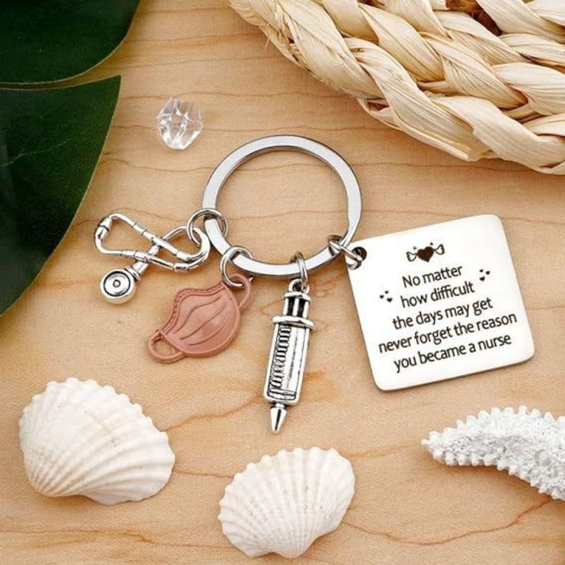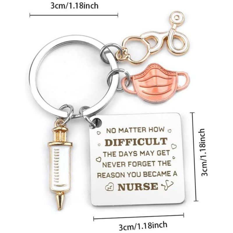 Be proud of your work, who you are, and the impact you make. The Nurse keychain features a stethoscope and needle tube design, perfect for showing appreciation to nurses. It can be used as a stylish accessory on keys, bags, or phones. This stainless steel keychain makes a thoughtful gift for nurses and healthcare professionals, suitable for various occasions. Its durable material ensures long-lasting color and no allergic reactions. Great for birthdays, holidays, or as a token of appreciation.
