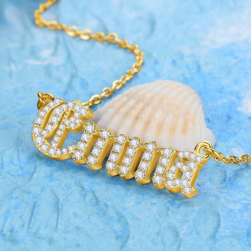 A wonderful gift for someone special, and a fantastic addition to your own jewelry collection! Our Name Necklace with Crystals, lets you personalize in a bold, unique way. With the name or word of your choice in capital letters, it features sparkling crystals that catch the light beautifully.These personalized necklaces are made with sterling silver, copper and come complete with a matching rolo chain, which is carefully attached to each end of the central pendant for a perfectly balanced look. Soufeel has a ton of customized jewelry options that are reasonably priced and make for great gifts for all sorts of occasions like birthdays, holidays, anniversaries. Old English Crystal Name Necklace, Silver 14K Gold Plated - Golden.