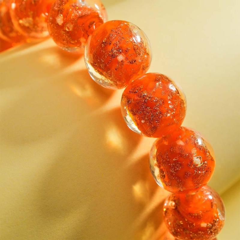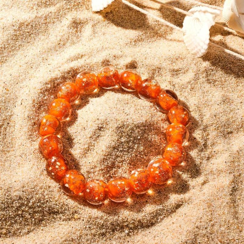 Orange Firefly Glass Stretch Beaded Bracelet Glow in the Dark Luminous Bracelet