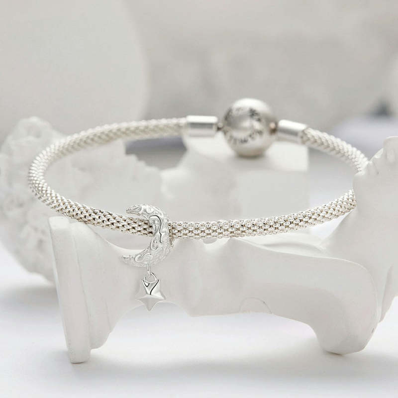 Pattern Stars Moon Charm Silver