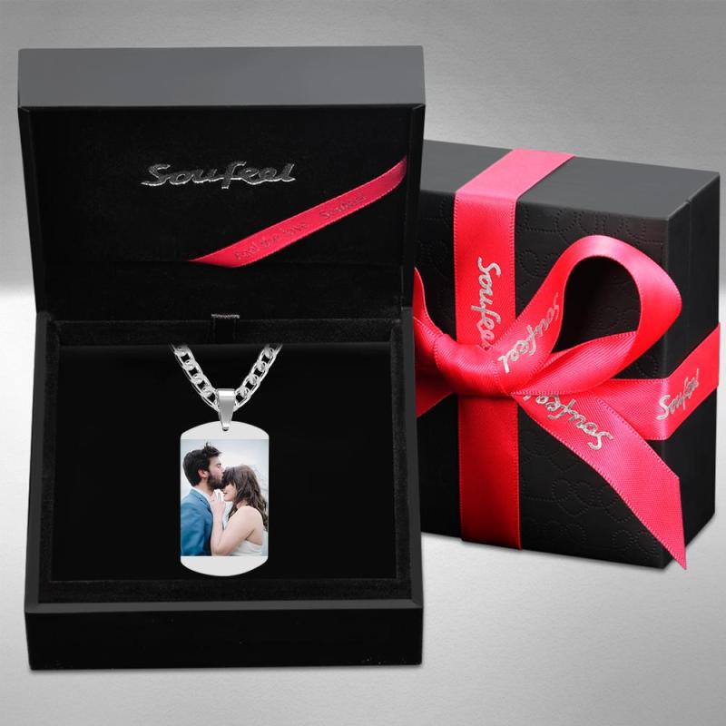 Personalized Stainless Steel Special Date & Photo Pendant Dog Tag Men's Calendar Necklace