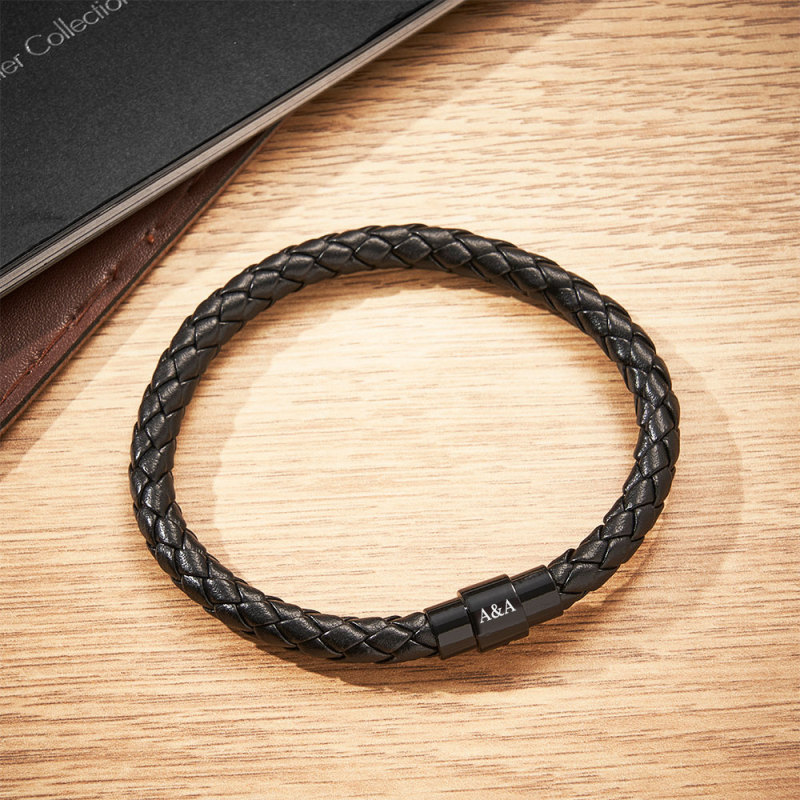 Personalised Stylish black Leather Clasp Bracelet Personalised with the Lucky Recipients Initials a Lasting Bespoke Gift