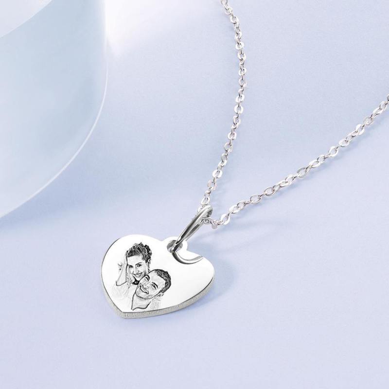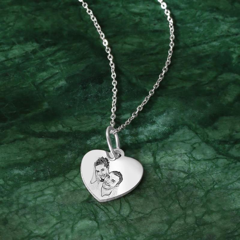Engraved Heart Shadow Carving Photo Necklace Silver
