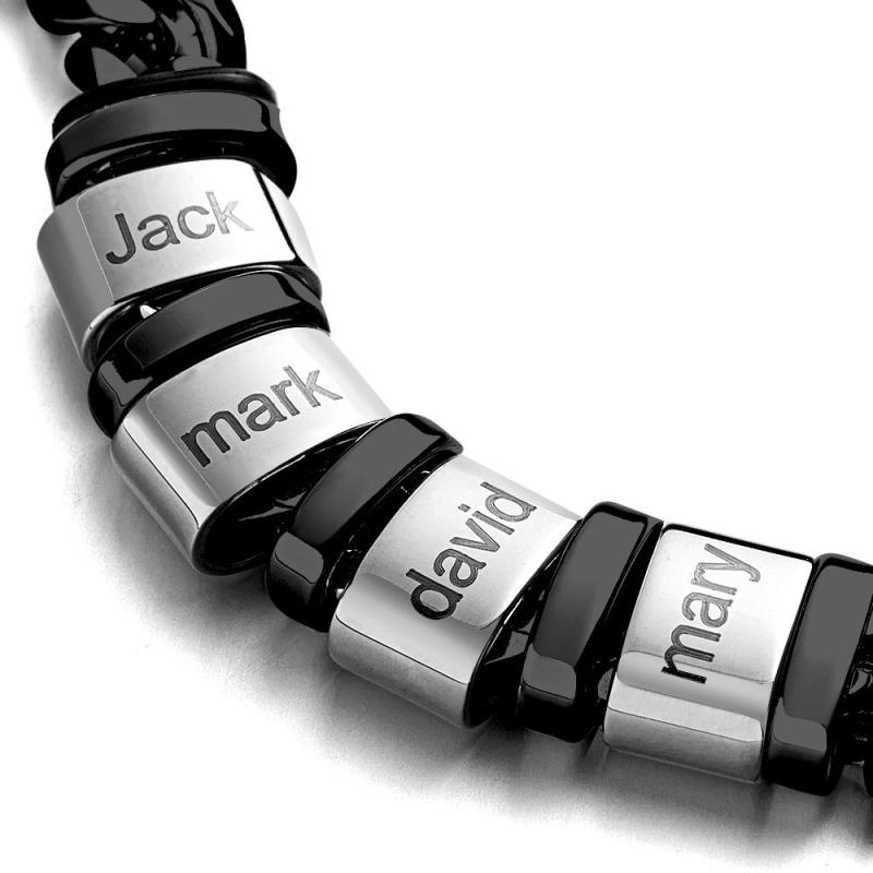 This custom-made stainless steel Cuban link bracelet with personalized laser engraving is perfect for any dad. It can be customized with up to six names and features a minimalist design that showcases its highest quality materials. Show him how special he is with this handmade, personalized gift.