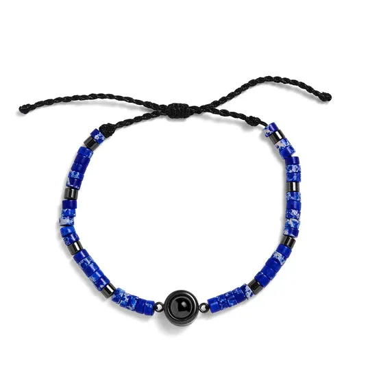 Introducing our Personalized Beaded Photo Bracelet, a stylish twist on our bestselling design with an upgraded, adjustable beaded bracelet. Crafted with semi-precious stones, this bracelet offers both beauty and symbolism, allowing you to choose from Hematite, Sodalite, or Multi. Each stone holds its own special meaning: