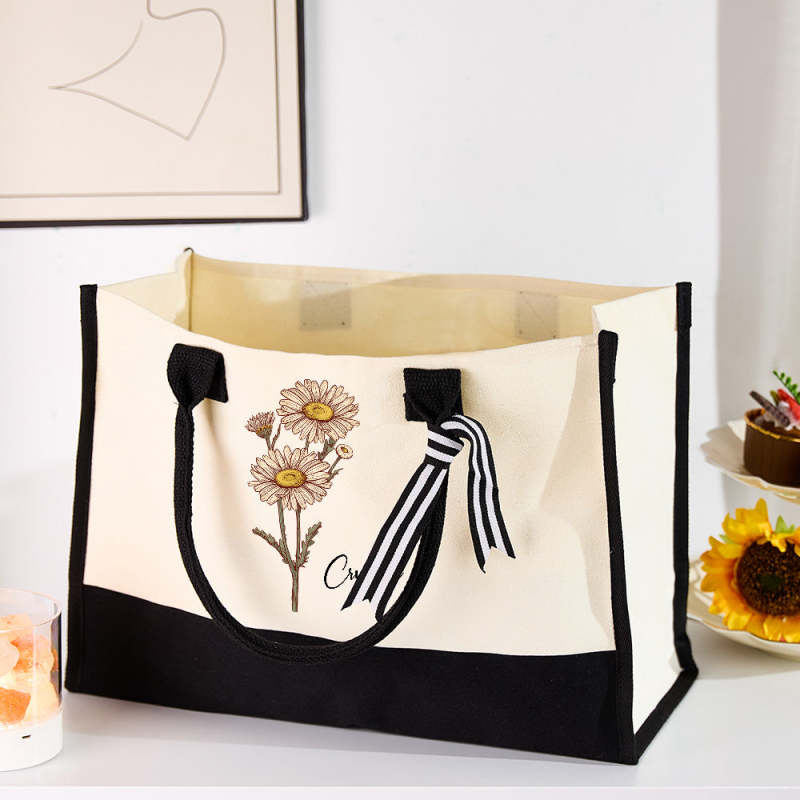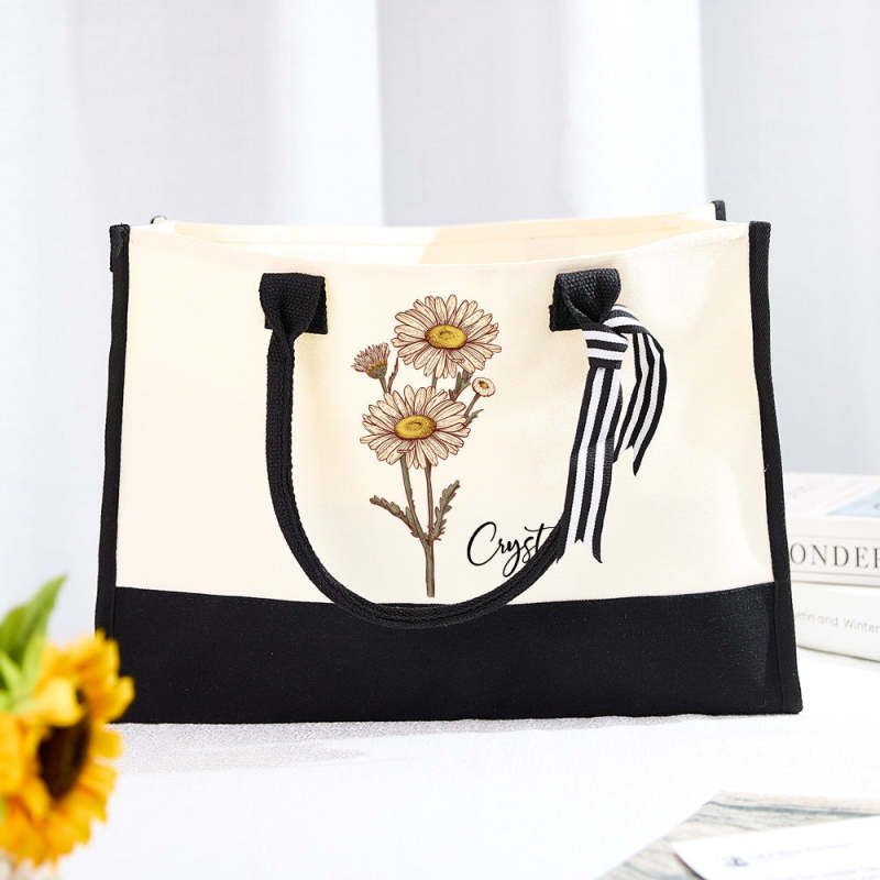 This Personalized Birth Flower Canvas Tote Bag is the perfect gift for her. The large capacity allows for easy transport of essentials, while the personalized birth flower and canvas material add a touch of custom charm. It's the perfect combination of practicality and sentimentality.