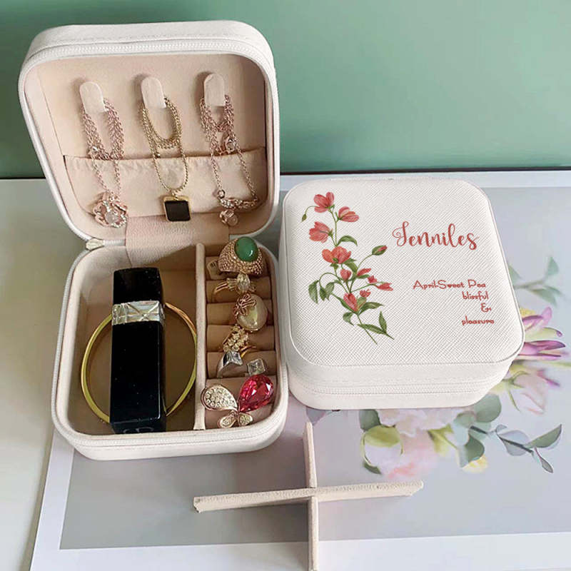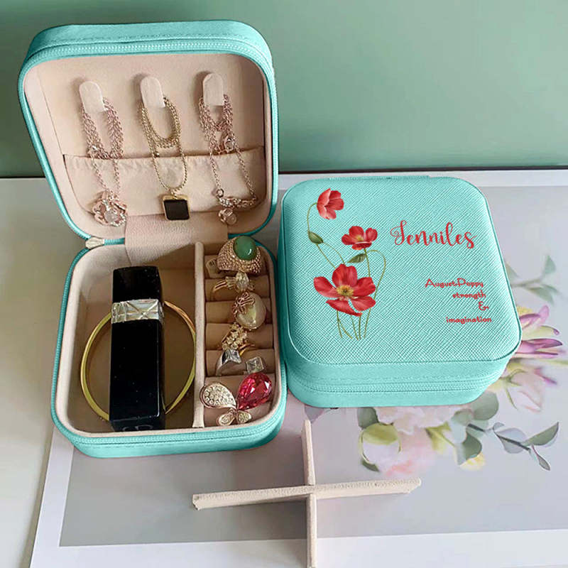 Personalized Birth Flower Leather Jewelry Box Bridesmaid Gift for Her