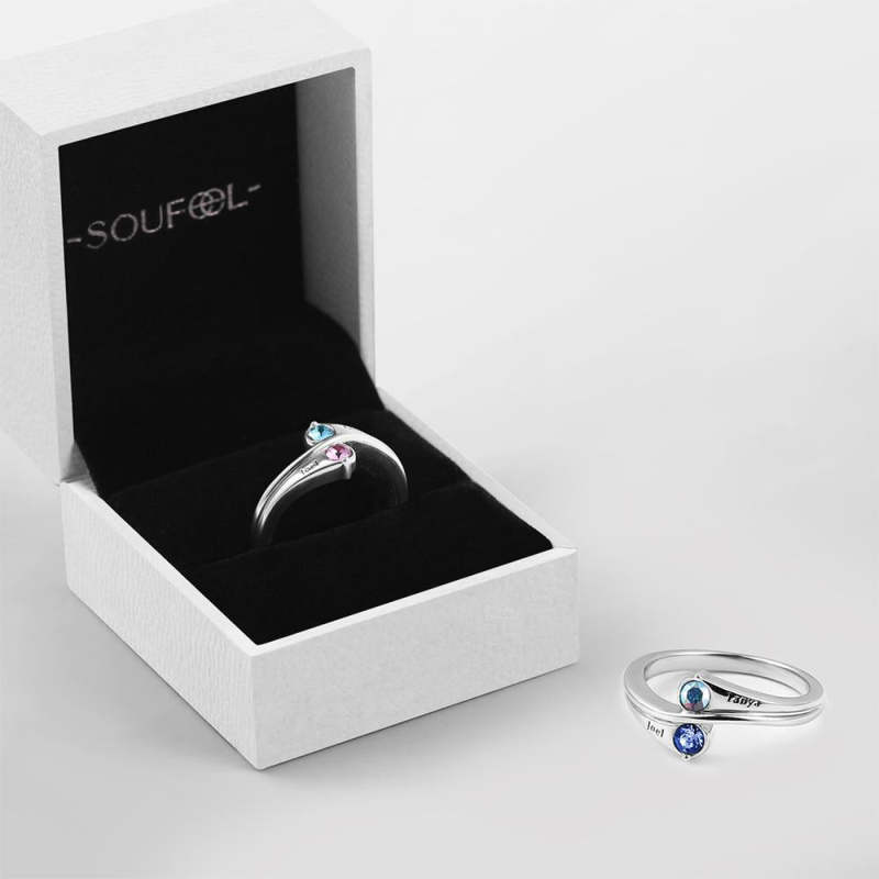 Celebrate forever love with this exquisite hand-finished ring in sterling silver, with engravable promise ring and changeable crystals. SOUFEEL-The Feeling of Love.