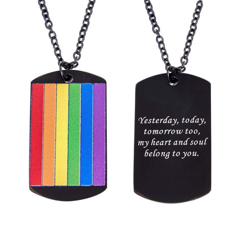 Overall, our custom engraved stainless steel necklace with a rainbow theme is a must-have accessory for anyone who wants to show off their individuality and celebrate the LGBTQ+ community. Order yours today and wear it with pride!