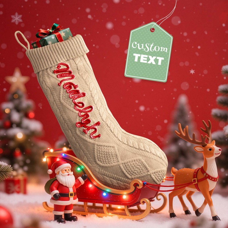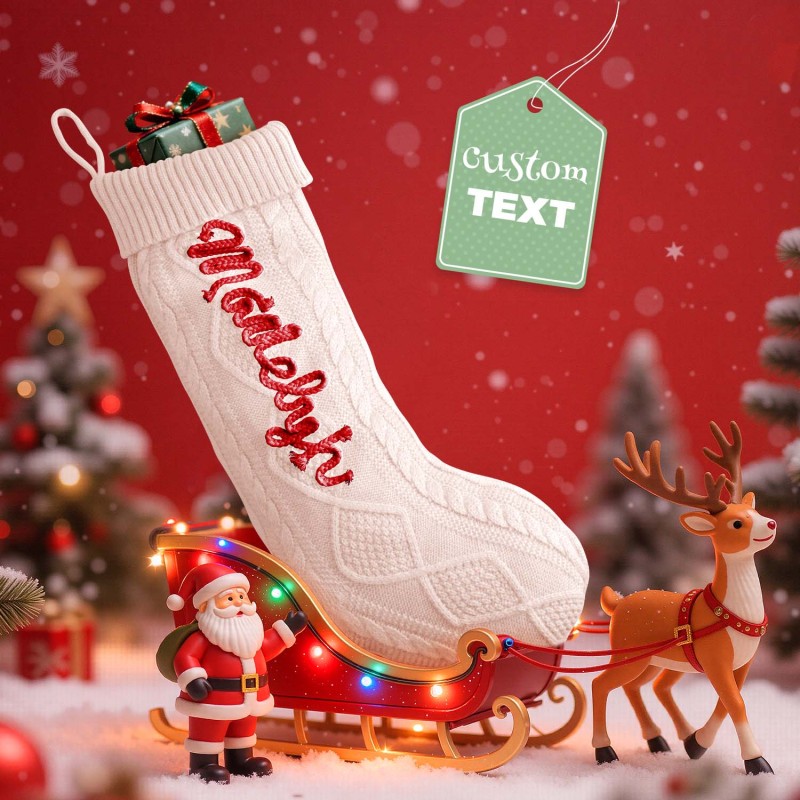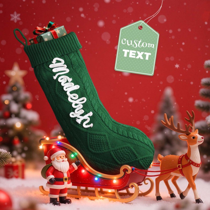 Celebrate the holidays with our Custom Christmas Stockings. These knitted stockings are beautifully crafted to add a personal, festive touch to your home. Each stocking can be personalized with a name, making them perfect for the entire family. Available in five color options for the stocking itself, and three color options for the name embroidery, you can mix and match to suit your holiday decor.