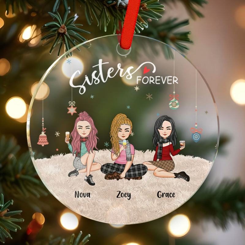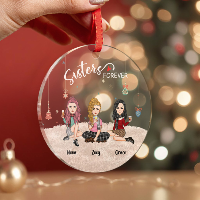Decorate your home this Christmas season with our Personalized Circle Ornament Besties Forever. This adorable cartoon drawing features little people and is the perfect addition to your holiday decor. It also makes a thoughtful gift for your loved ones. Get your hands on this festive hanging ornament now!