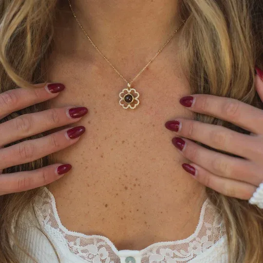 Introducing our Personalized Pavé Clover Necklace, a meaningful piece that combines the timeless symbol of good fortune with a deeply personal touch—the ability to include a cherished photo inside. Whether celebrating a special connection or carrying a memory close to your heart, this necklace is more than jewelry—it’s a symbol of luck, love, and connection that’s always with you. Perfect for daily wear or as a heartfelt gift, this Personalized Pavé Clover Necklace adds elegance, meaning, and protection to every moment. The photo is visible by looking through the gem or with your phone.