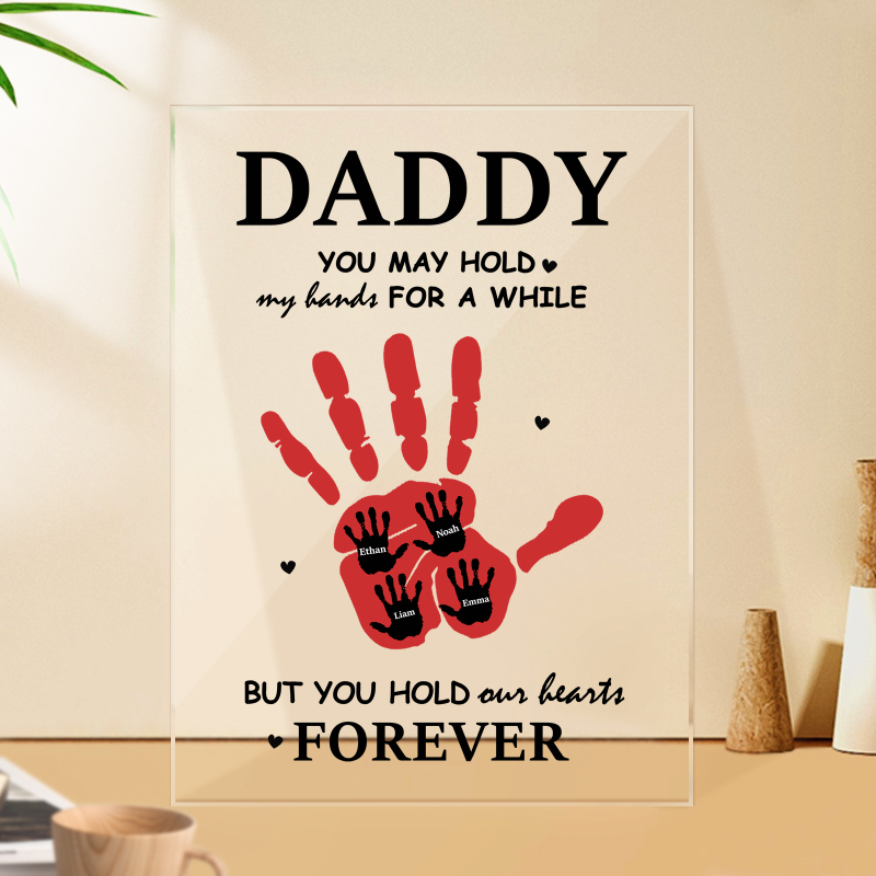 This Father's Day gift can be customized with 1-6 children's palms, and each palm can also be customized with each child's name. Dad is the greatest man in the world, and this plaque is the perfect gift for Dad. Give it as a birthday, Christmas, anniversary, Thanksgiving, first Father's Day gift or a gift for stepdad, etc. This lovely gift is just what your dad has been waiting for!