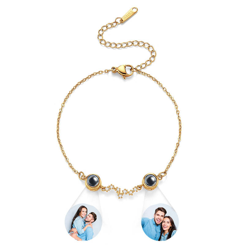 Personalized Double Projection Photo Bracelet Accompanied by Diamonds