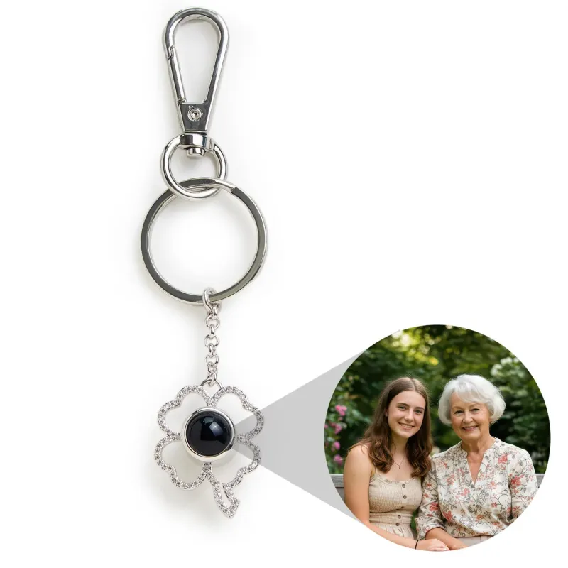 Introducing our Holiday Keychain Collection, featuring dazzling crystal-encrusted designs in snowflake, dove, and star motifs, each with a custom photo gem for a personal touch. Each keychain comes with both a large split ring and a convenient dog clip, making it easy to attach to keys, cards, or wear as a stylish bag charm. Whether you're keeping your essentials organized or adding a festive touch to your favorite bag, these keychains bring sparkle and sentiment to your holiday season. Perfect for gifting or as a personalized holiday accessory for yourself.