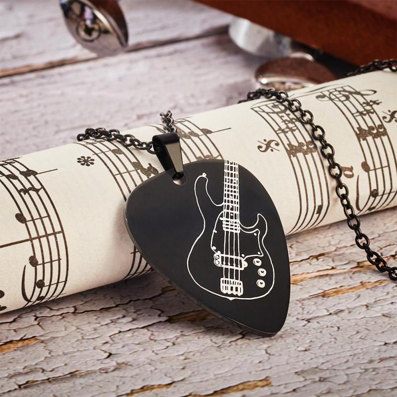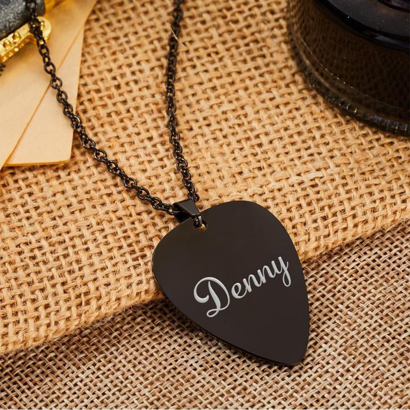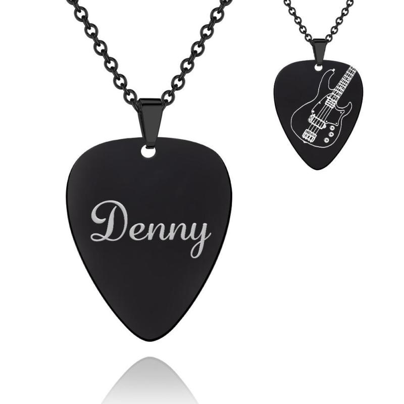 Personalized Engraved Guitar Pick Pendant Necklace Black