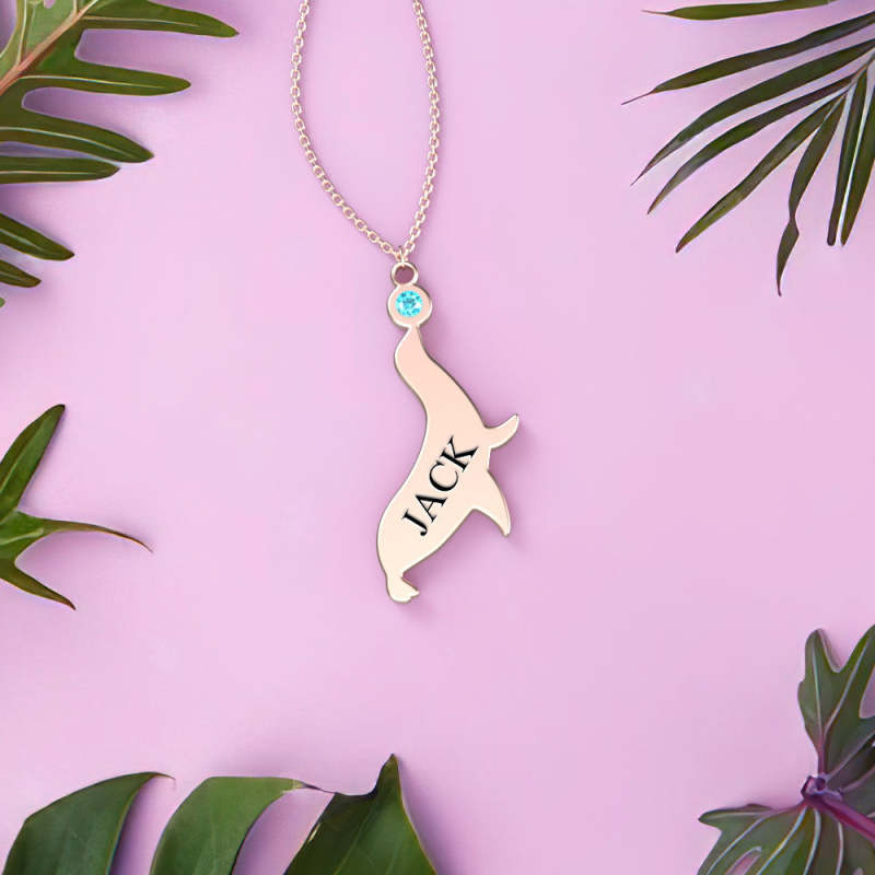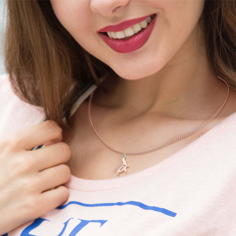 Personalized Engraved Necklace with Birthstone Dolphin Necklace for Adult
