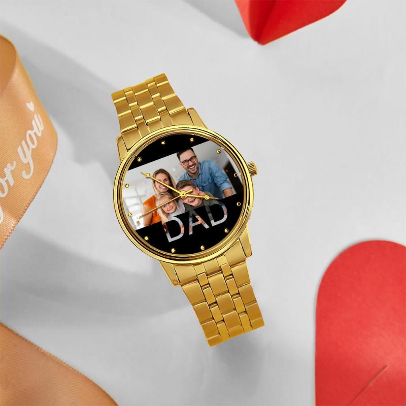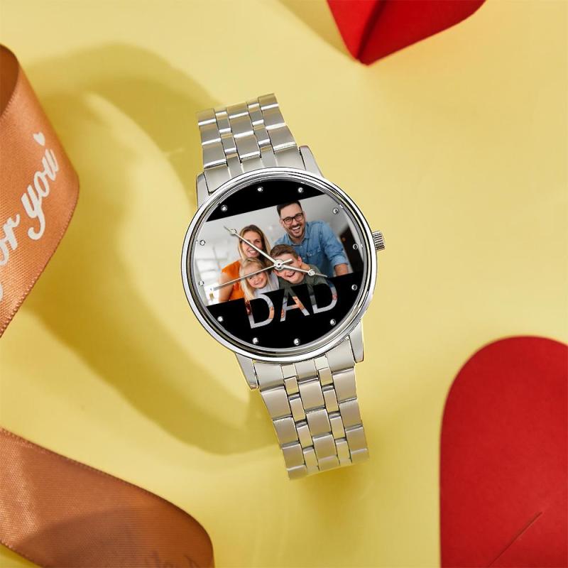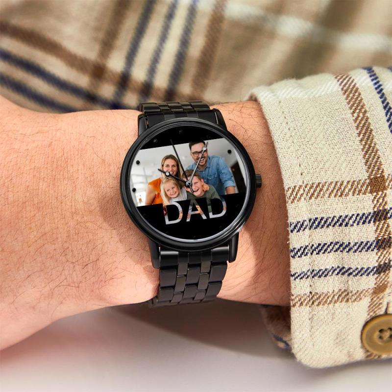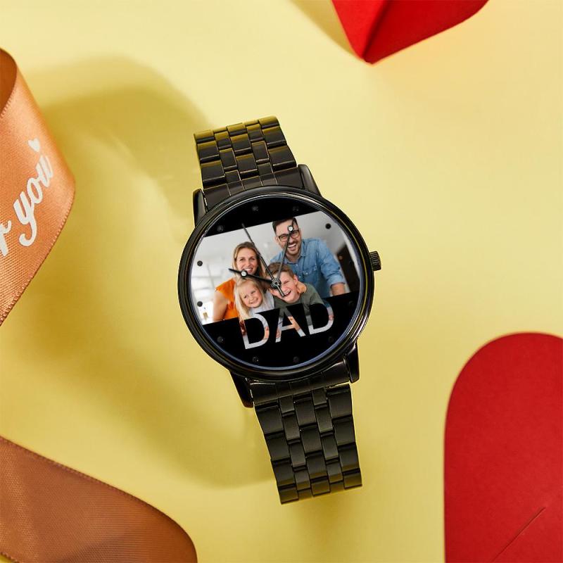 Personalized Engraved Photo Watch Father's Day Gifts Men's Black Alloy Bracelet Photo Watch To Dad