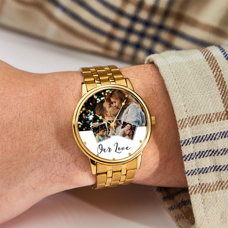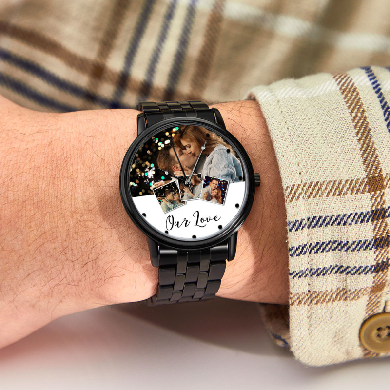 Personalized Engraved Photo Watch Men's Black Alloy Bracelet Photo Watch Valentine's Day Gifts To Boyfriend