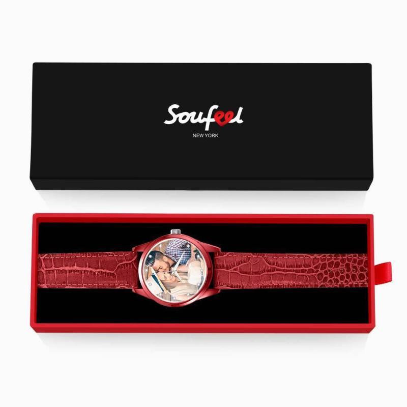 Surprise your loved one with a custom photo watch which is purely custom made to fit any personality. The image of design is directly printed onto the inside of watch surface. Once you place an order, you'll be able to preview how it will appear on the watch. Please do remember high resolution picture will come out better than the preview. This custom photo watch cannot be refunded once we start the making process. A custom photo watch always makes a great gift and will never go out of style. Buy yours today! Personalized Engraved Watch, Photo Watch with Red Leather Strap Men's - Gift for Boyfriend.