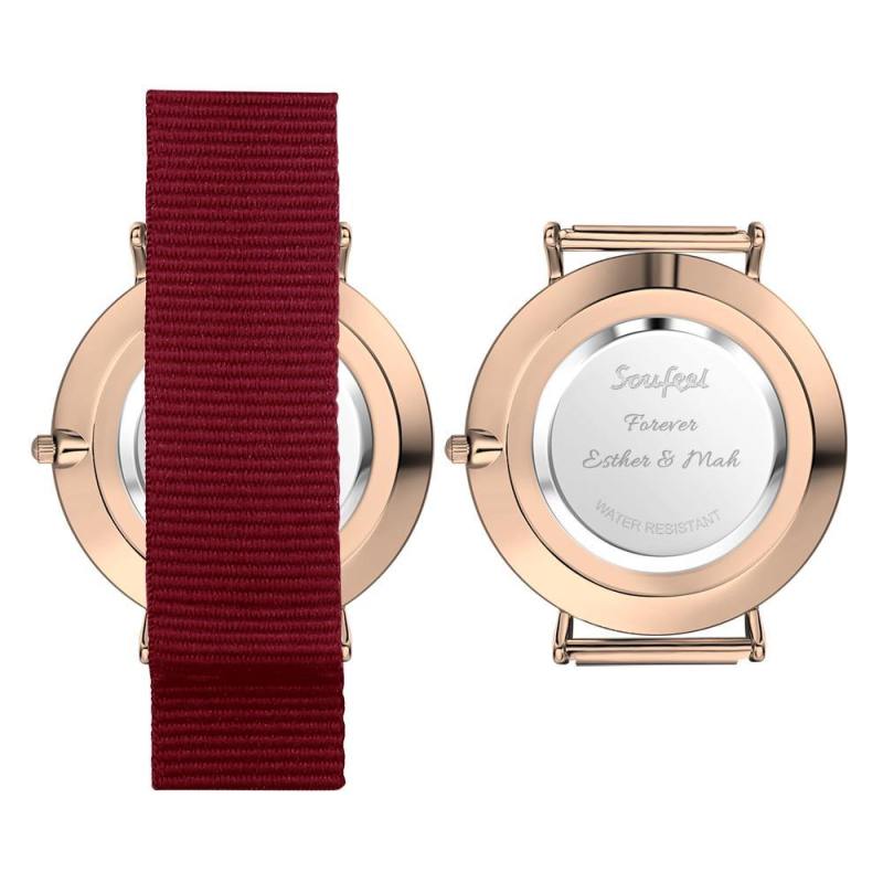 Surprise your loved one with a custom photo watch which is purely custom made to fit any personality. The image of design is directly printed onto the inside of watch surface. A custom photo watch always makes a great gift and will never go out of style. We can personalise the reverse of the watch with a message, Carefully engraved, it forever remembers your message.This watch is our signature masterpiece, the perfect fusion of minimalism and sophistication. Dressed up or down, it's sure to punctuate the look and will make a perfect gift for your loved ones, or even a treat for yourself! Soufeel has a ton of customized jewelry options that are reasonably priced and make for great gifts for all sorts of occasions like birthdays, holidays, anniversaries,Father's day. Personalized Engraved Watch, Photo Watch with Red Strap - Gift for Boyfriend.